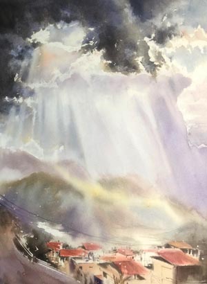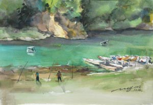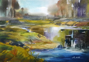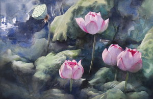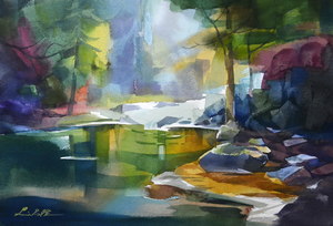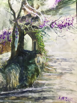 ![]() 流水似弦 39x27cm 水彩 $8,800 |