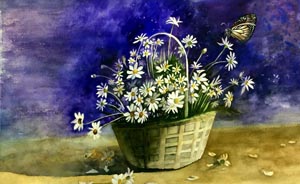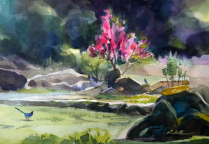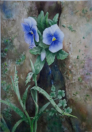 ![]() ●已售出 山壁上的野花 26x38cm 水彩 |