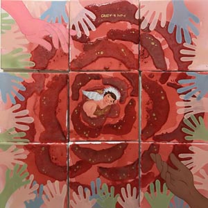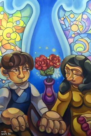 ![]() ●已售出 人生七彩/天使花園 73x73cm 油彩.畫布 |