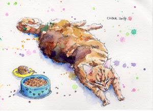 ![]() ●已售出 日常系列-寧可懶洋洋躺著 25x16cm 廣顏+水彩+色鉛筆 |