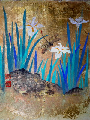 ![]() ●已售出 櫻花嫣紅 30x42cm 天然漆+金箔 | ||