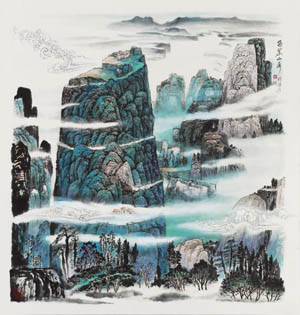 ![]() ●已售出 翡翠山屏 67x70cm 水墨 紙本 | ||