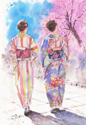 ![]() 相伴 38x26cm 水彩 $9,200 | ||