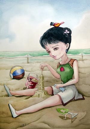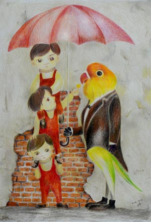 ![]() ●已售出 甜蜜的負擔 21x27.5cm 彩色墨水+代針筆 | |
