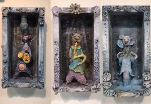 ![]() ●已售出 動物變奏狂想曲 系列四 音樂盒 16x32x6cmx3幅 壓克力+木頭+紙黏土 |