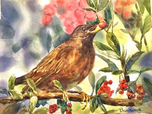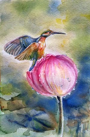 ![]() 嫣紅鵲聲 39x27cm 水彩 $8,800 |