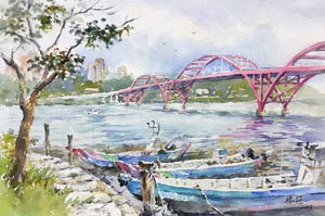 ![]() 相映河邊 39x27cm 水彩 $8,800 |