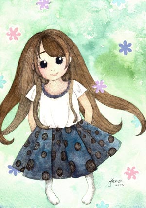 ![]() 日常系列-親愛的,謝謝你陪我 25x16cm 廣顏+水彩+色鉛筆 $3,000 |