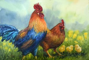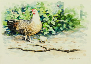![]() ●已售出 金雞報春 21x29.7cm 壓克力+代針筆 |
