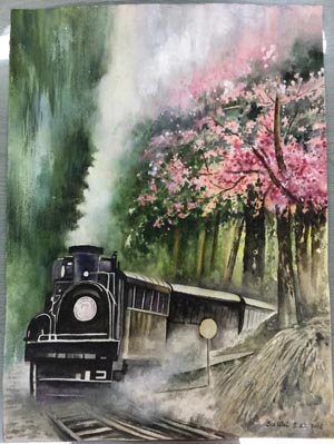 ![]() ●已售出 幸福鐘聲 56x38cm 水彩 |