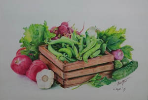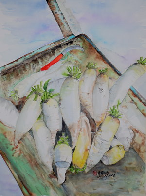 ![]() ●已售出 手推車裡的蘿蔔 30x40cm 水彩 |