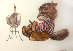 ![]() ●已售出 日常系列-屬於自己的電視 25x16cm 廣顏+水彩+色鉛筆 |
