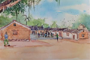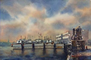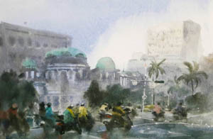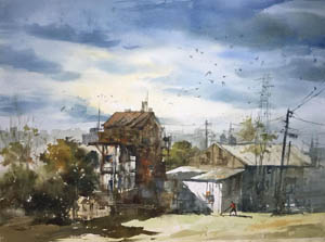![]() ●已售出 豐原之晨 74x56cm 水彩 |