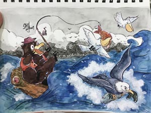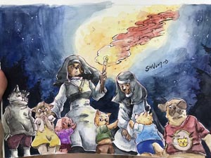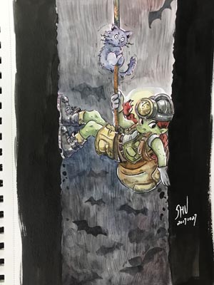 ![]() ●已售出 冬季限定的朋友2 24x17cm 水彩+代針筆 |