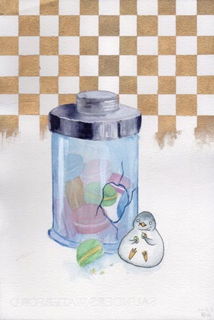 ![]() 日常系列-顛倒哇哇哇 25x16cm 廣顏+水彩+色鉛筆 $3,000 |