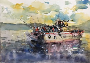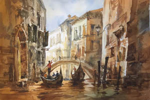 ![]() ●已售出 威尼斯貢多拉之旅 54x38cm 水彩 |