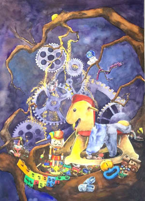 ![]() ●已售出 大男孩,大玩具 38x28cm 水彩+代針筆 |