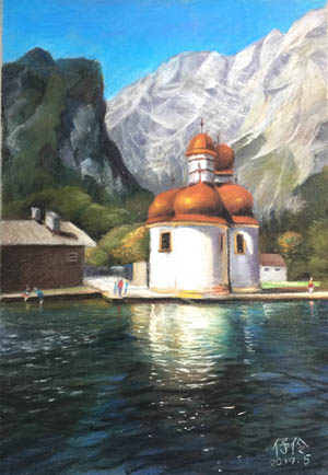 ![]() 德國Hintersee湖畔 55x37cm 粉彩 $9,800 | ||