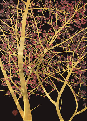 ![]() ●已售出 櫻花嫣紅 30x42cm 天然漆+金箔 | ||