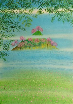 ![]() ●已售出 春櫻 20x84cm 膠彩 |