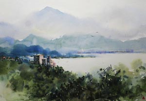 ![]() 湖水如鏡 39x27cm 水彩 $8,800 |