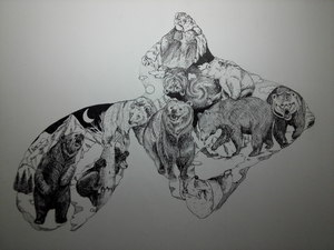 ![]() ●已售出 太陽&月亮 25x25cm 代針筆+碳粉 | |