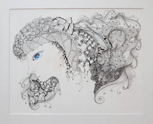 ![]() ●已售出 藍色眼睛的女孩 35.5x28cm 代針筆+色鉛+碳粉 | |