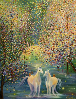 |  夜間守護神/我心和你一起飛翔 油彩.畫布 35x27cm $10,000 |  ●已售出 夜間守護神/甜蜜!My Love. 油彩.畫布 35x27cm |