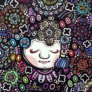 |  ●已售出 愛放電 壓克力 45.5x53cm |  ●已售出 愛睏 壓克力 53x65cm |
