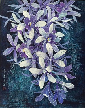 |  ●已售出 黃昏的雨景 水彩 27x39cm |  藍色金萱花 水彩+壓克力 35x24cm $15,000 |