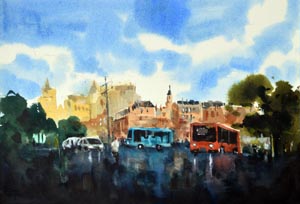 |  聖米歇爾山的路上 水彩 33x23cm $15,000 |  蒙馬特市集 水彩 37x27.5cm $16,000 |