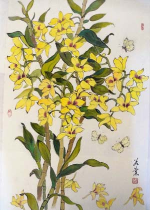 |  ●已售出 春江水暖鴨先知 水彩 38x52cm |  明媚春光 水彩 38x52cm $10,000 |