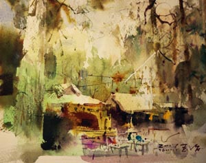 |  空山我為峰 透明水彩 39x54,5cm $36,000 |  依水人家 透明水彩 38x54,5$36,000 |