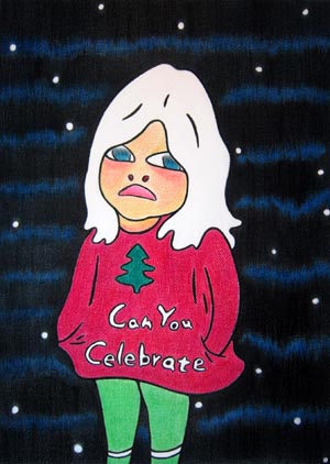 |  ●已售出 冬季限定的好朋友 代針筆、水彩 38x28cm |  ●已售出 等待-習慣也期待新喜 針代筆+水彩 18x13cm |